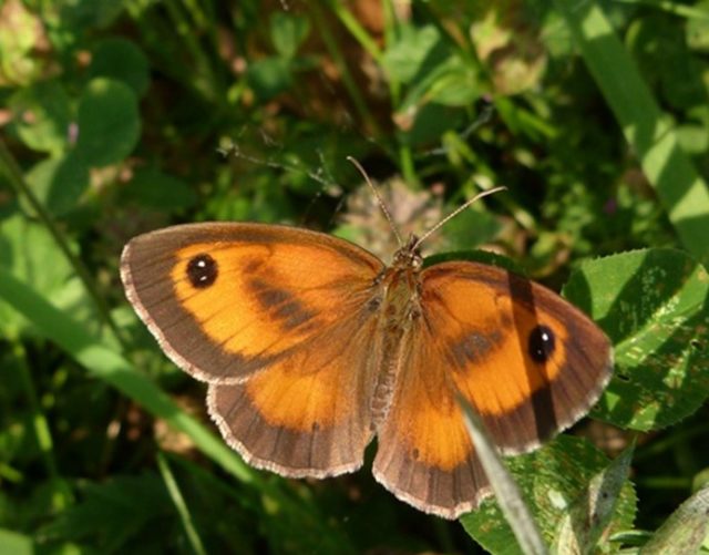 Familia Nymphalidae : Lobito agreste (Pyronia tithonus) en vegetación de cuneta en Argoños.