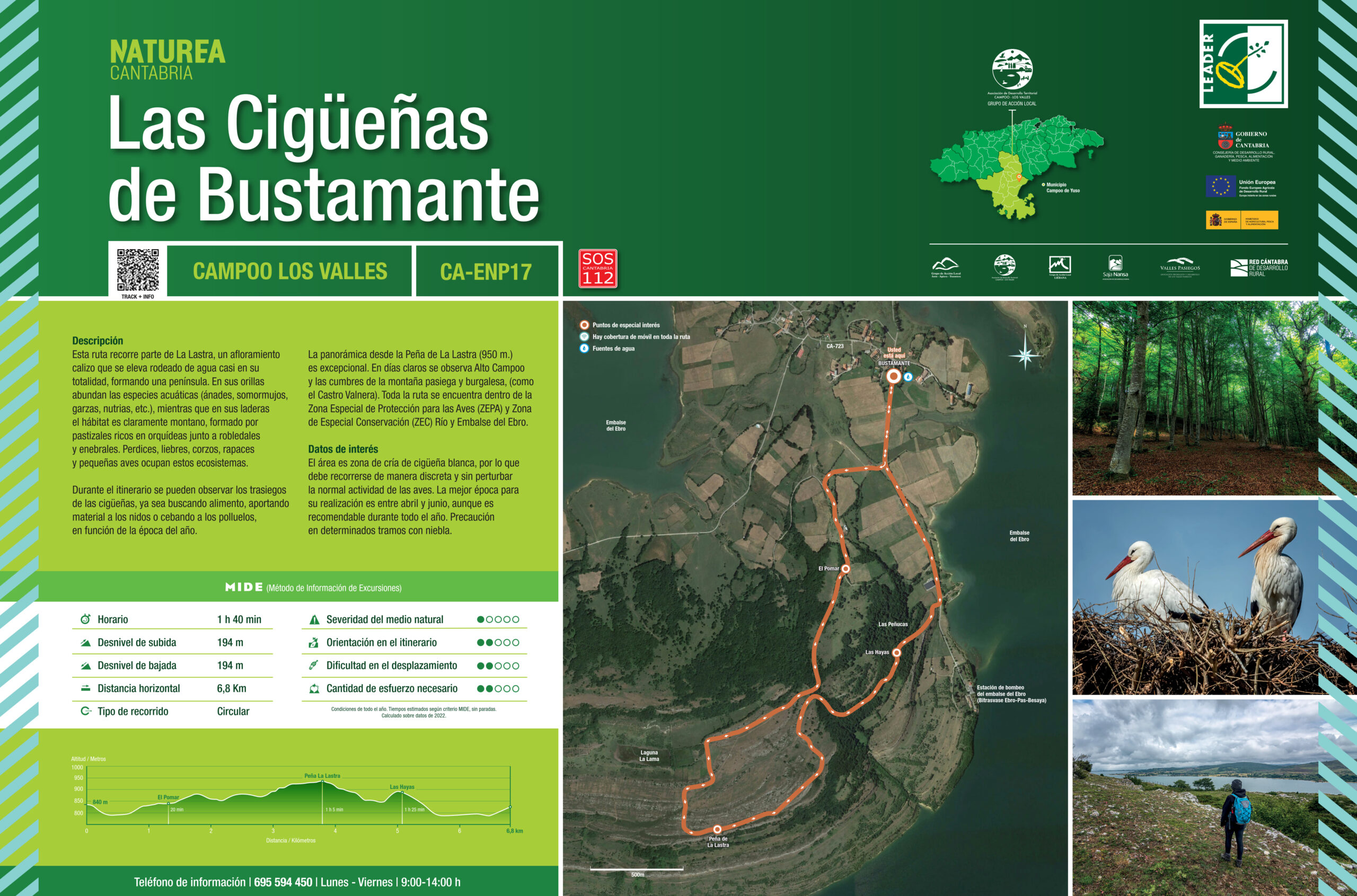 Durante el itinerario se pueden observar los trasiegos de las cigüeñas, ya sea buscando alimento, aportando material a los nidos o cebando a los polluelos, en función de la época del año. La panorámica desde la Peña de La Lastra (950 m.) es excepcional. En días claros se observa Alto Campoo y las cumbres de la montaña pasiega y burgalesa, (como el Castro Valnera). Toda la ruta se encuentra dentro de la Zona Especial de Protección para las Aves (ZEPA) y Zona de Especial Conservación (ZEC) Río y Embalse del Ebro.